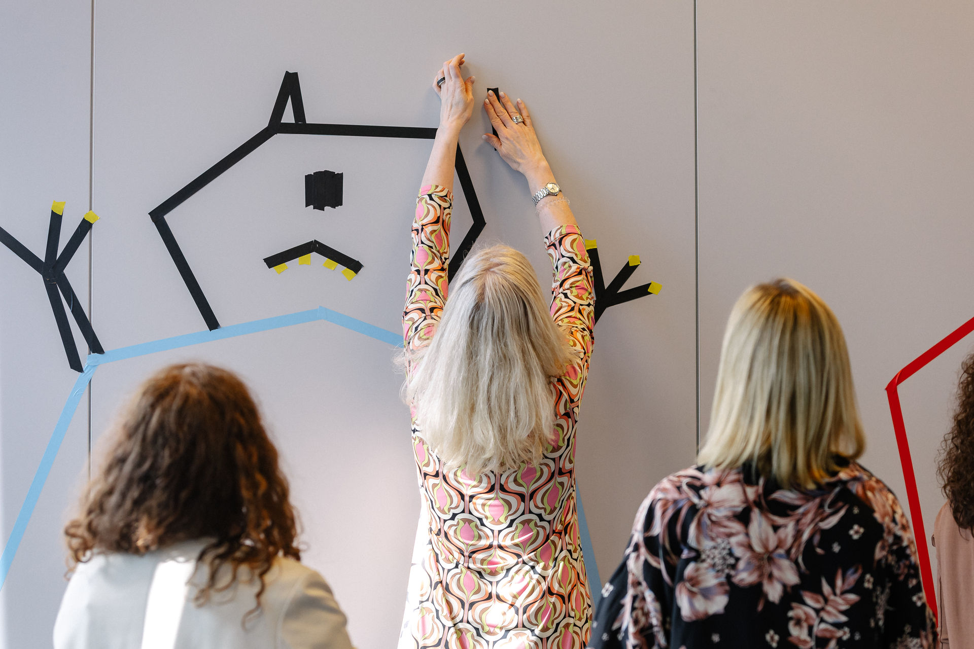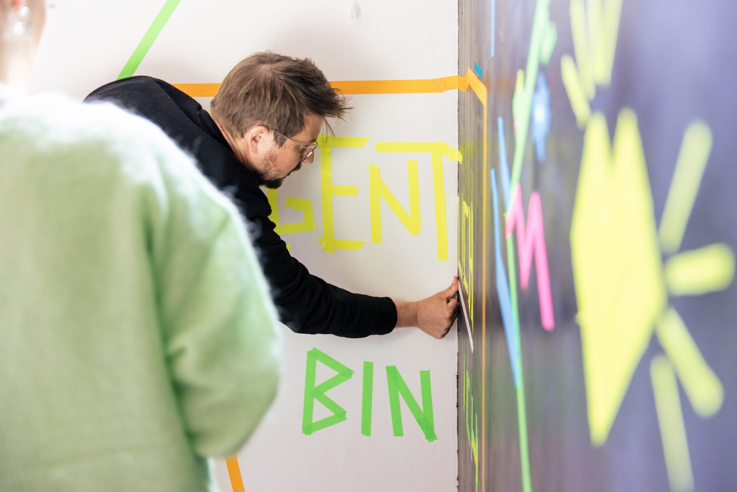 Facilitape® ist eine Methode, die Facilitation (Prozessbegleitung) und Tape Art (Klebebandkunst) verbindet. Sie setzen Tape als multifunktionales Werkzeug ein – zur visuellen Raumgestaltung ebenso wie als methodisches Element, um Teilnehmende zu aktivieren und Lern- oder Arbeitsprozesse räumlich zu verankern.